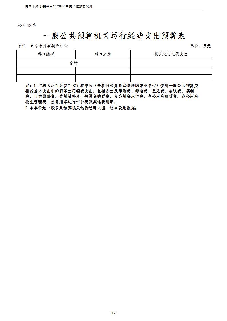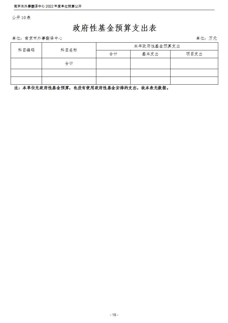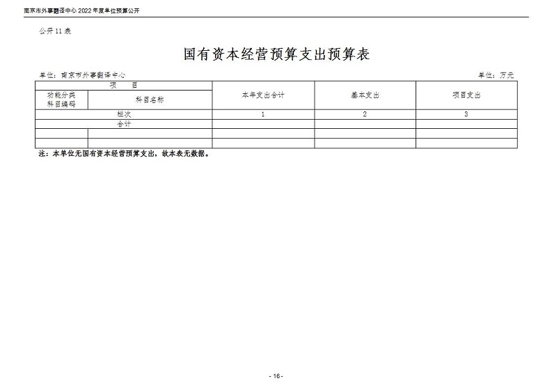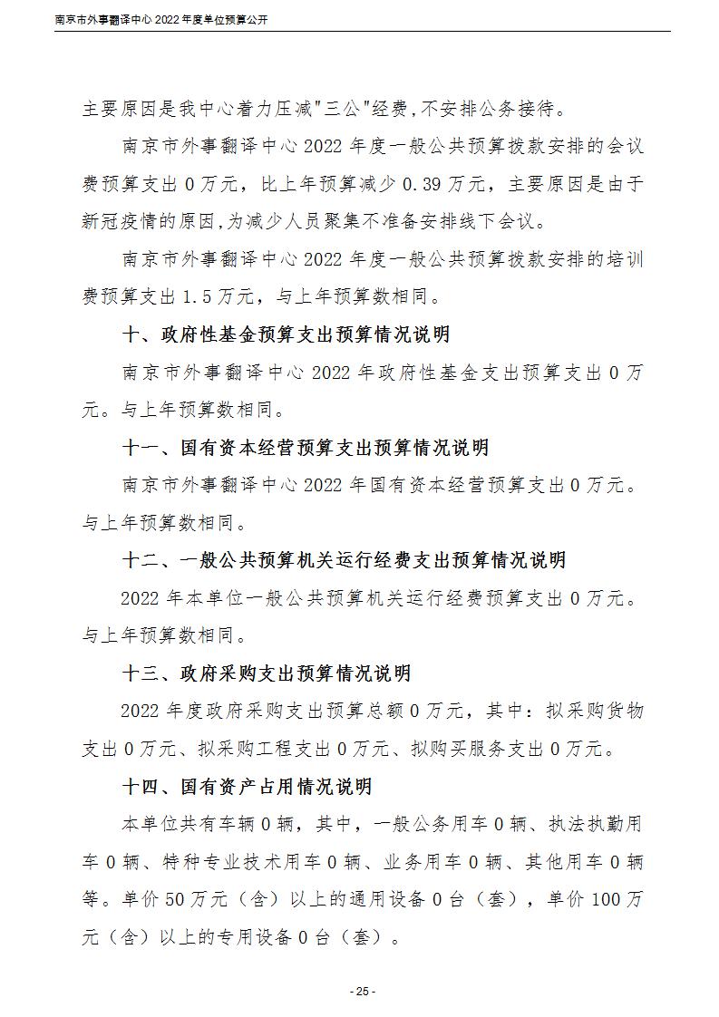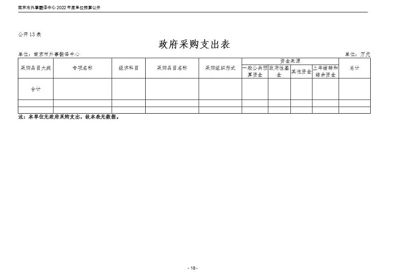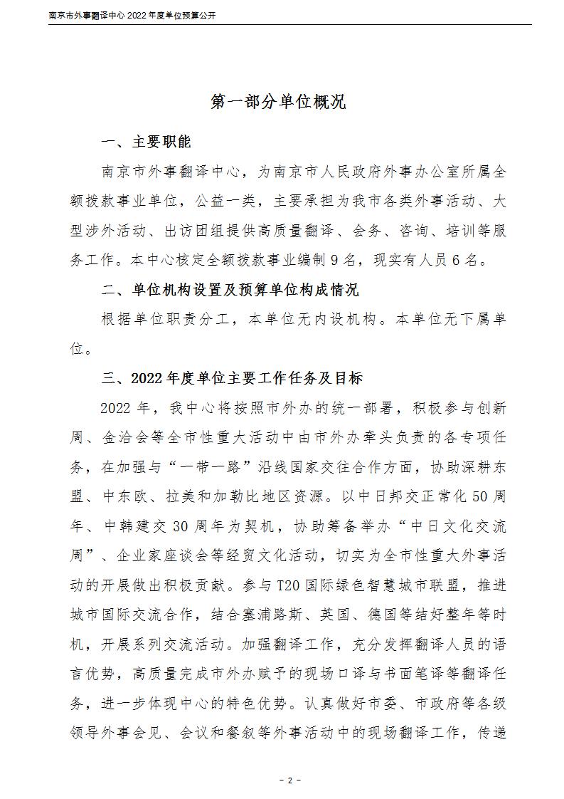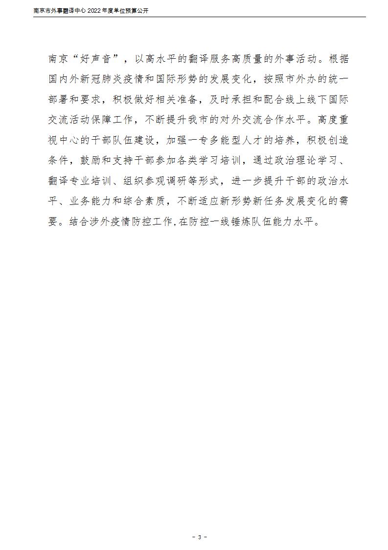 | 信息名称: | 南京市外事翻译中心2022年度单位预算公开 | ||