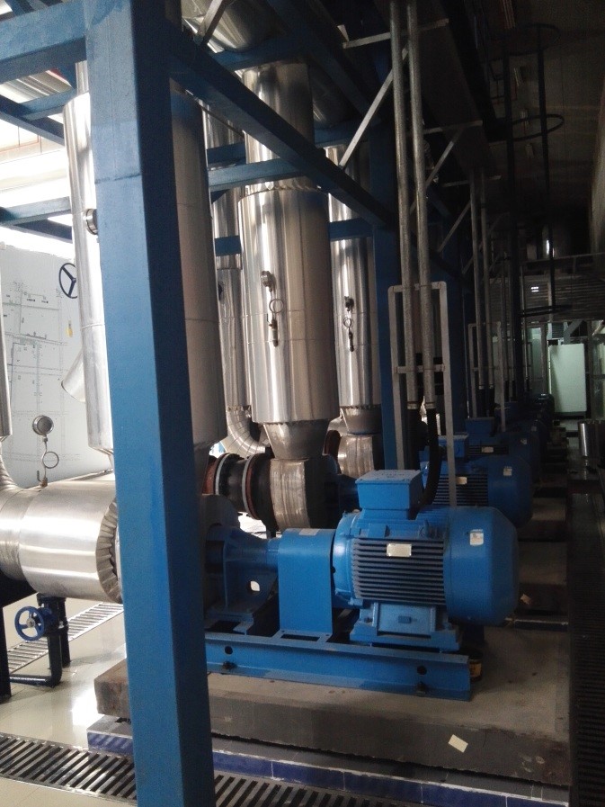 (2) 3 air conditioning circulating pumps, brand: Grundfos, model: LF11-80123-158269; flow: 660 m3/h, lift: 20m, motor power: 55kW, AC380V; driving mode: frequency conversion control.