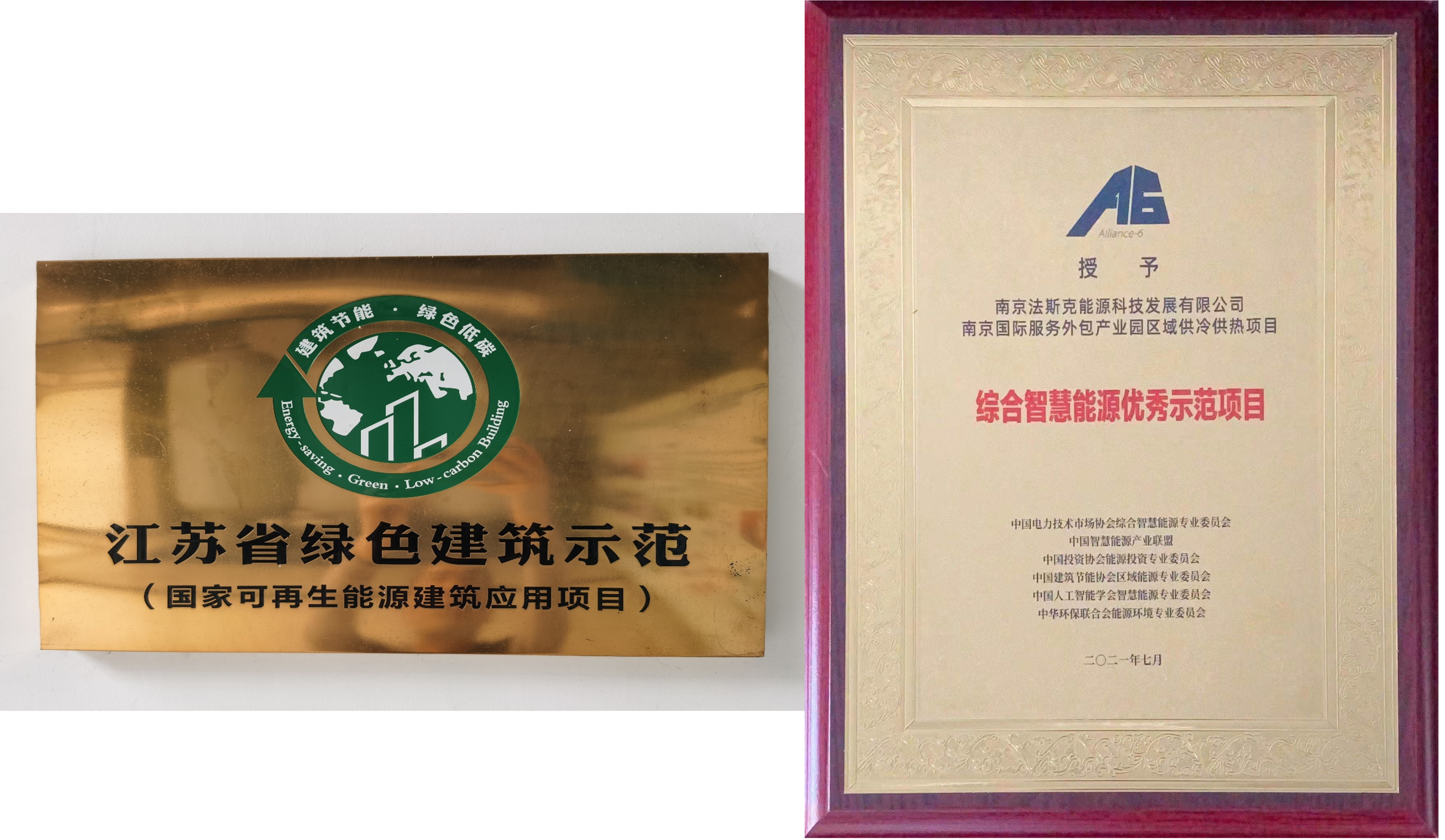 The district low-carbon cooling and heating system of Nanjing International Service Outsourcing Park constructed by Nanjing Fasike Energy Technology Development Co., Ltd., a subsidiary of SPIC Jiangsu Electric Power Co., Ltd., based on the policy of long-term operation with meager profit, can effectively reduce the operation cost of the park, realizing green, low-carbon and sustainable development. The project won the honors of “Renewable Energy Building Application Demonstration Project” of the Ministry of Construction in 2008 and “Integrated Smart Energy Excellent Demonstration Project” of China Electricity Technology Market Association in 2021, and is the largest building energy conservation and emission reduction demonstration project in Jiangsu Province.