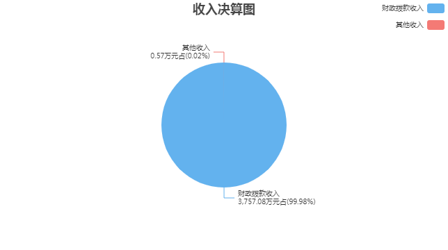 2021年度本年收入决算合计3,757.66万元,其中:财政拨款收入3,757.08万元,占99.98%;上级补助收入0万元,占0%;财政专户管理教育收费0万元,占0%;事业收入(不含专户管理教育收费)0万元,占0%;经营收入0万元,占0%;附属单位上缴收入0万元,占0%;其他收入0.57万元,占0.02%。