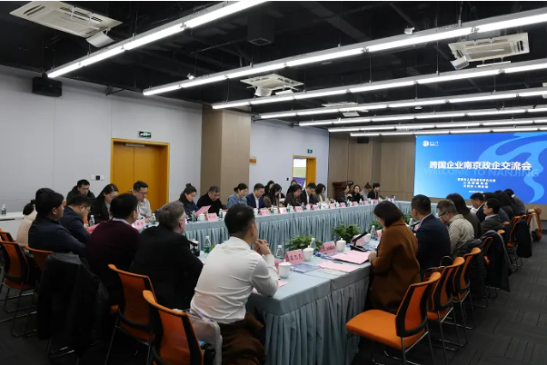 江苏省南京市外办举办“友城企业走进南京”之跨国企业南京政企交流会,面对面向近20家跨国企业代表解读产业强市重点发展方向、外资落地政策、外籍人士居住便利化等企业关心信息。