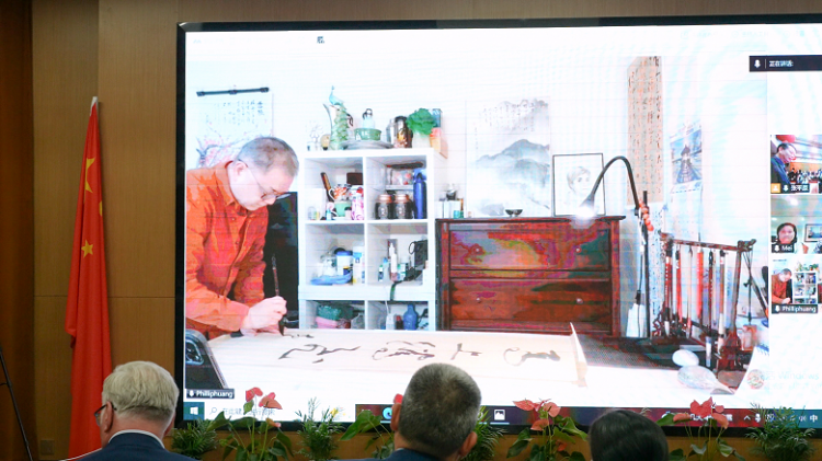 联谊会中,新西兰中国友协会长麦克·道森及夫人与现场视频连线并发表新春祝福,美国纽约江苏商会副会长黄志武在视频连线中进行画马创作,书法家们现场挥毫写“福”字,南航留学生们载歌载舞,中外友人欢声笑语,现场掌声不断,氛围温馨而热烈。