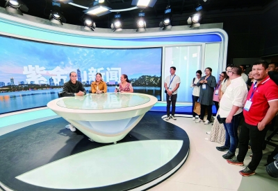 24日下午,洪都拉斯新闻官员与记者研修班一行走进南京报业传媒集团,参观了报史馆、虚拟演播厅,沉浸式感受南京融合传播的成效。在随后举行的中国(南京)·洪都拉斯新闻媒体国际交流会上,研修班一行看到他们的参访活动被迅速剪辑成片,纷纷为中国记者的“快速高效”鼓掌点赞。