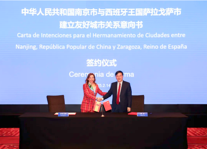 On February 14, Nanjing and Zaragoza, Spain, signed a Letter of Intent to establish a sister city relationship. Chen Zhichang, Mayor of Nanjing, welcomed Mayor of Zaragoza Natalia Chueca Muñoz and her delegation.
