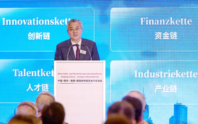 斯图加特属于中国驻德国法兰克福总领事馆领区,总领事黄昳扬参加经贸合作交流会。他说,南京对营商环境的不断创新优化,正是中国作为投资热土的生动写照。当德国质量和创新遇上中国效率与活力,必将更好地彼此成就。