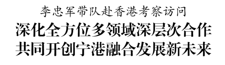 从长江之畔到香江之滨,从紫金山麓到太平山下,春风传暖意,宁港情谊深。3月8日至10日,市长李忠军带队赴香港,考察访问重点机构、知名企业、著名高校等,加强优势互补、战略协同,深化全方位、多领域、深层次合作,共同开创宁港融合发展新未来。副市长许峰参加有关活动。
